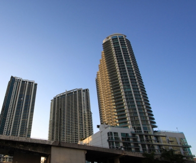 The fifty story Ten Museum Park condo in Downtown Miami by architect Chad Oppenheim is located on Biscayne Boulevard and overlooks Bicentennial Park, Biscayne Bay and the Miami cityscape, It's actually one of the most easily noticeable buildings thanks to its crystalline structure. The building has one, two, three, four and five bedroom Miami condos for sale.